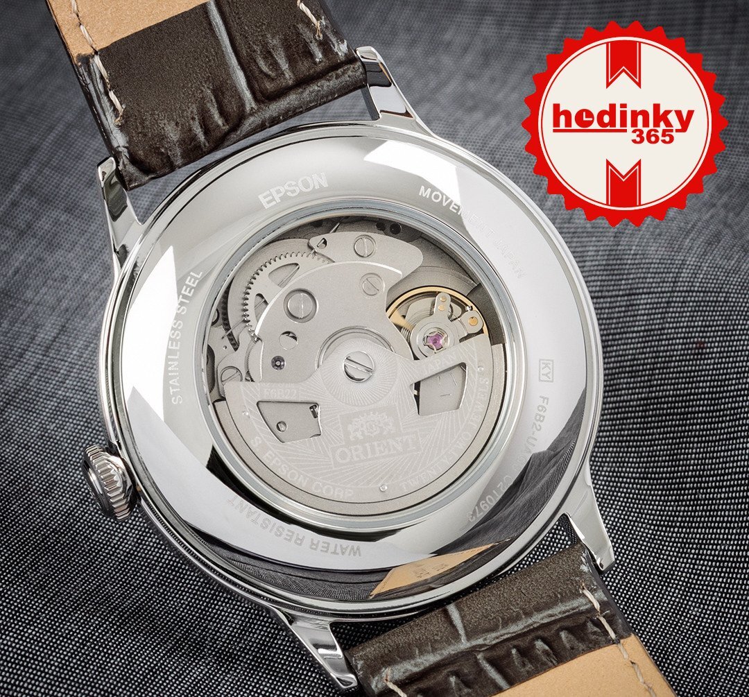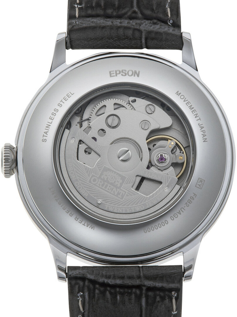 Mechanisch met automatisch opwindmechanisme. Orient F6B22, Lopende reserve 40h, 21.600 BPH (3Hz), 22 stenen