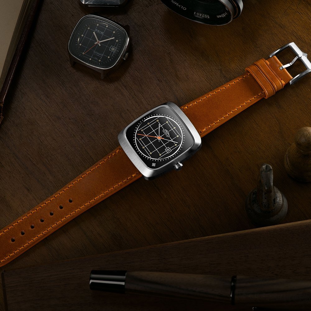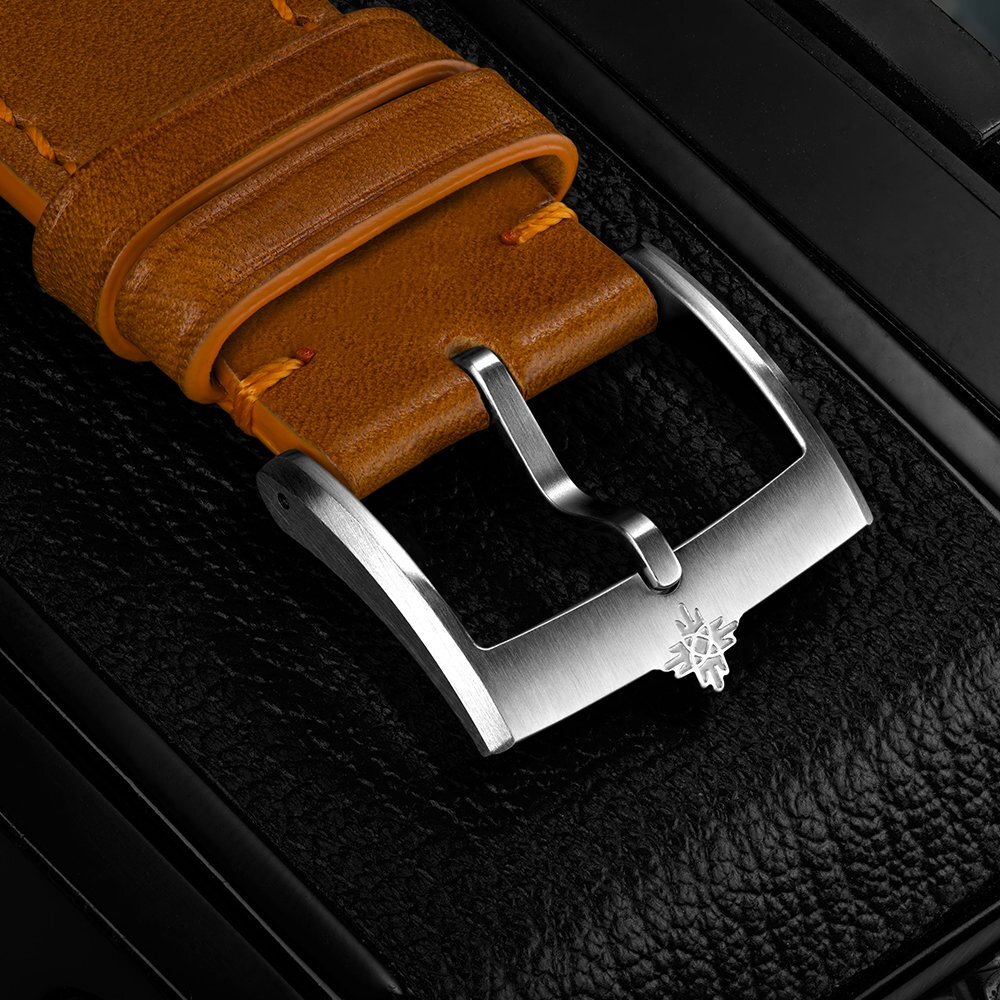Heren horloge - leren riempje, stalen kast, saffier glas. Alle technische parameters kunnen hieronder worden gevonden