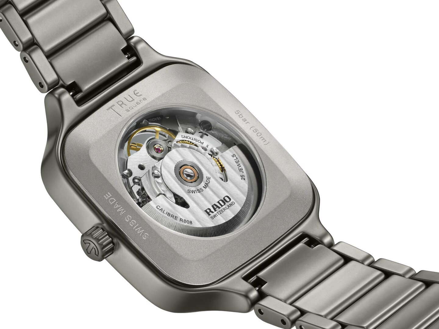 Mechanisch met automatisch opwindmechanisme. Rado R808, Lopende reserve 80h, 21.600 BPH (3Hz), 25 stenen, Hacken